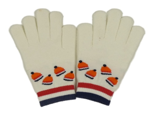 Smetanovo-červeno-tmavomodré prstové rukavice s tištěnými čepičkami a nášivkou UNOX