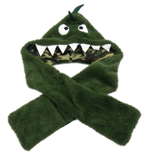 Tmavozelená kožušinová čapica so šálou - príšerka