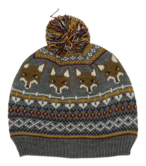 Sivá vzorovaná čapica s liškami a brmbolcom