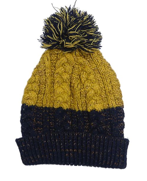 Okrovo-tmavomodrá pletená čapica s brmbolcom