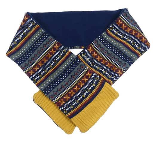 Tmavomodro/šedo-rezavo-okrová vzorovaná pletená podšitá šál George