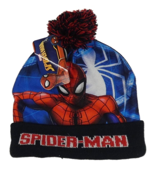 Nové - Modro-červená plyšovo/pletená čapica so Spider-manem
