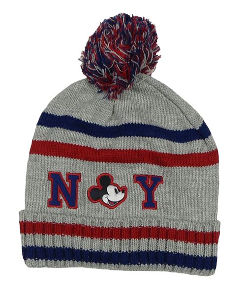 Sivá čapica s prúžkami a Mickey Mousem s brmbolcom Disney