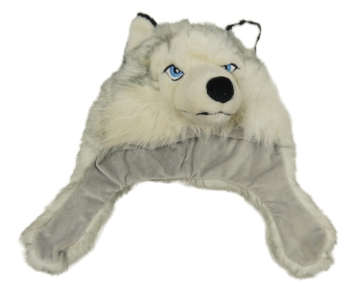 Šedá chlupatá čepice - vlk