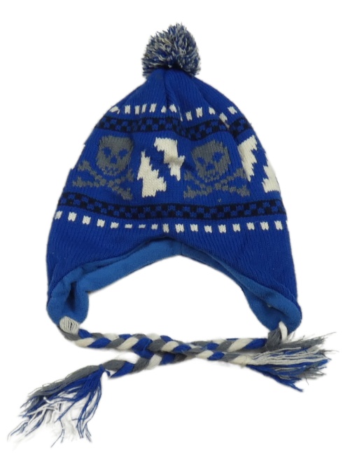 Modrá vzorovaná čapica s lebkami a brmbolcom