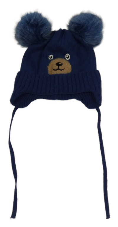 Tmavomodrá pletená podšitá ušanka s medvedíkom