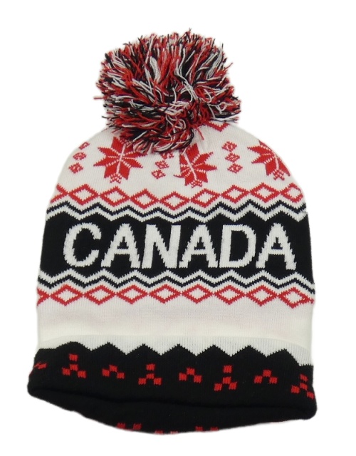 Bielo-čierno-červená vzorovaná čapica s nápisom a brmbolcom