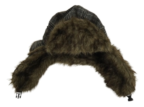 Hnědo-šedá kostkovaná beranice s kožešinou