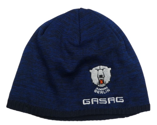 Safírovo-tmavomodrá melírovaná pletená čapica s medvěďom