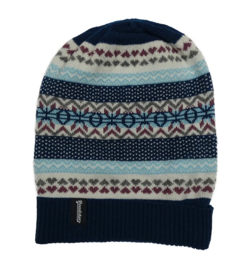 Tmavomodro-smetanovo-svetlomodrá vzorovaná pletená šmoulí čapica Roadsterse srdíčky