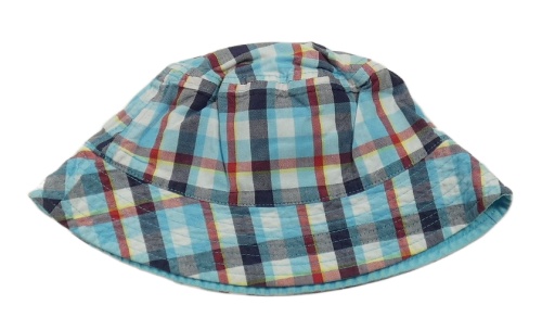 Modro-farebný kockovaný plátenný podšitý klobúk