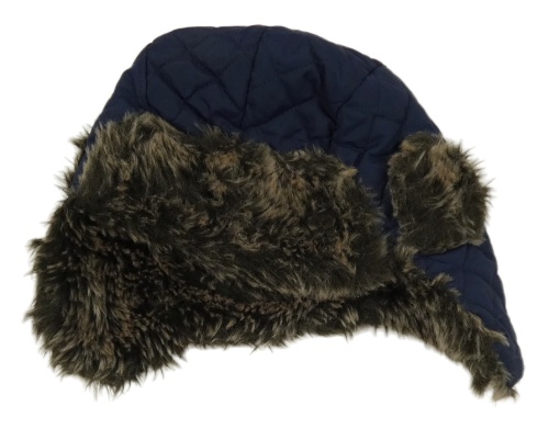 Tmavomodrá prošívaná šusťáková beranice s kožešinou F&F