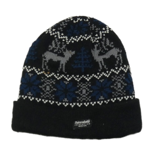 Čierna pletená čapica s jeleňmi a vločkami a stromami