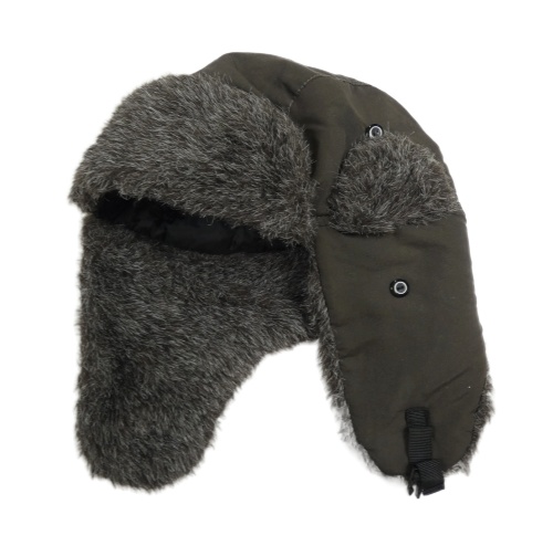 Tmavohnědá šusťáková zateplená beranice s kožešinou