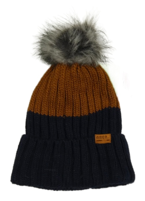 Nové - Tmavomodro-béžová pletená čapica s brmbolcom Dopodopo