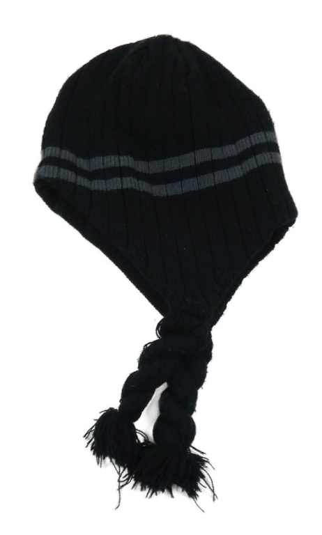 Čierno-sivá čapica s pruhmi a copánky