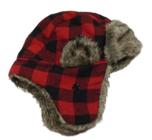 Červeno-černá kostkovaná vlněná beranice s kožešinou Tu