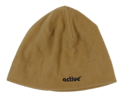 Béžová fleecová čapica s nápisom