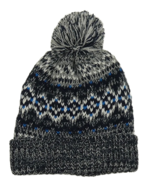 Sivo-čierno-modrá vzorovaná pletená čapica s brmbolcom