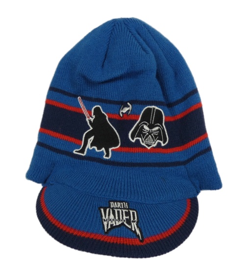 Modro-červená pruhovaná pletená čapica so StarWars a kšiltem