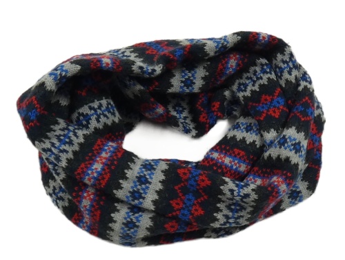 Černo-šedo-červená vzorovaná šála - tunel