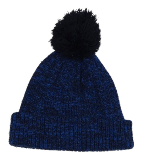 Tmavomodro-čierna melírovaná pletená podšitá čapica s brmbolcom