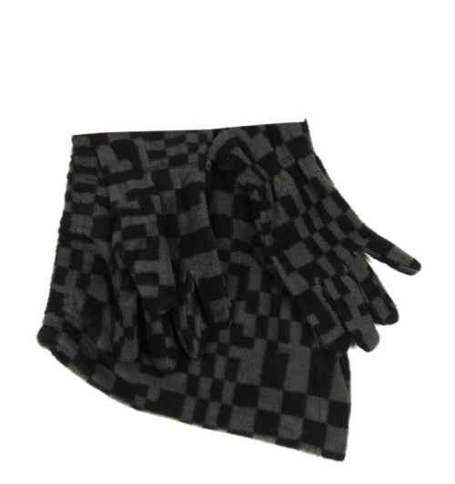 Nové - 2set - Šedo-černý vzorovaný fleecový nákrčník + prstové rukavice