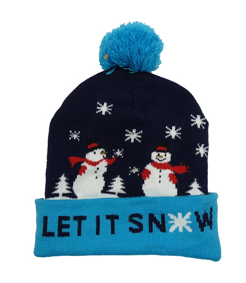 Tmavomodro-modrá čapica so sněhuláky a brmbolcom