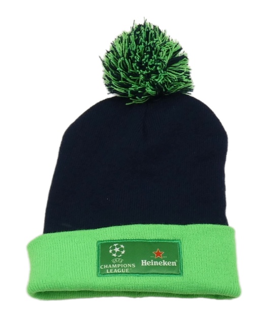 Tmavomodro-neónově zelená čapica s nášivkou a brmbolcom