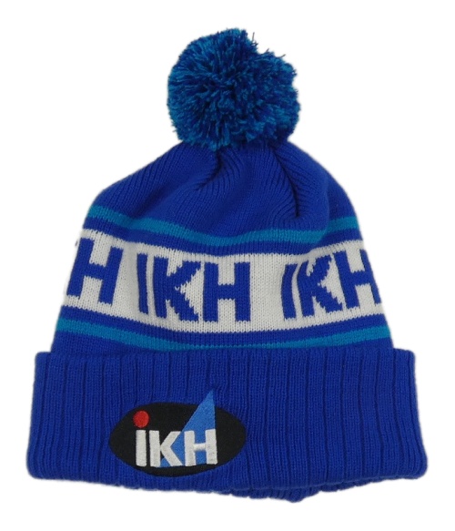 Tmavomodro-biela čapica s nápismi a brmbolcom
