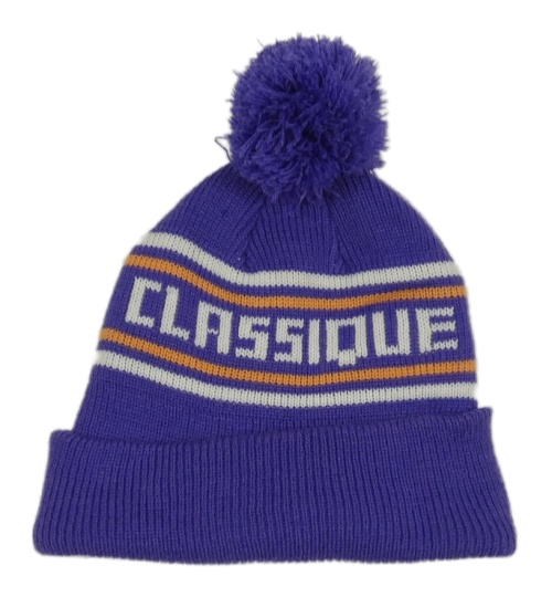 Fialová pletená čapica s nápisom a brmbolcom H&M