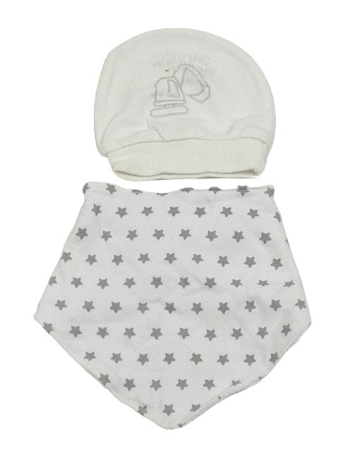 2set - Biela čapica s bagrem + bílý slinták s hviezdami
