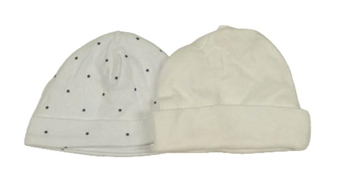 2x bavlněná čepice - biela s hvězdami + smotanová