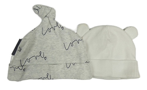 Nová - 2x - Čepice - Světlešedá melírovaná s nápisy, smetanová žebrovaná s uškami Tu