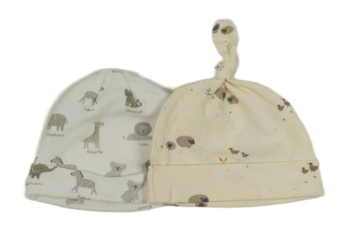 2x bavlnená čapica so zvířaty - bílá + béžová