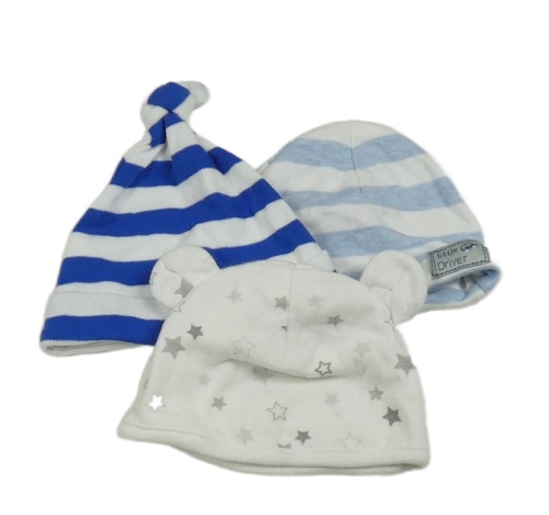 3x bavlněná čepice biela s hvězdami+ pruhovaná