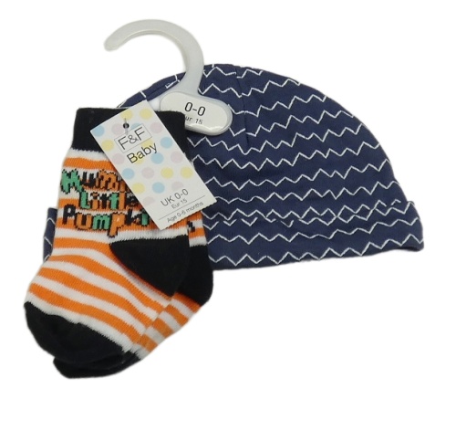 Nové - 2set - Tmavomodrá vzorovaná čepice + pruhované ponožky