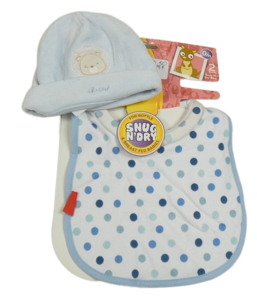 Nové - 2set - Svetlomodrá zamatová čapica s medvídkem + bodkovaný podbradník