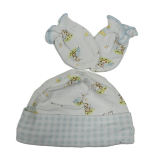 Nové - 2set - Bielo-modrá čapica s pejsky + rukavice