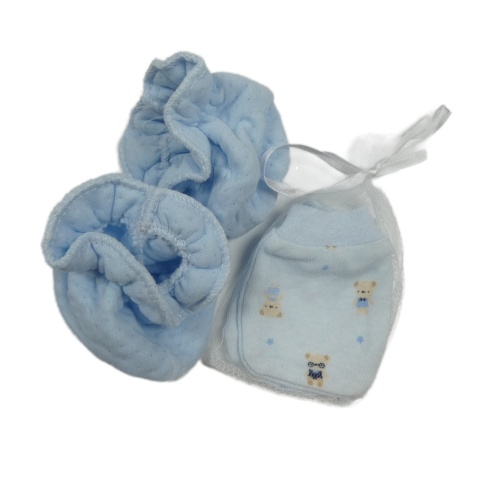 Nové - 2Set - Světlemodré rukavice s medvídky + papučky