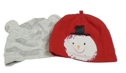 2x bavlněná čepice červená so Santa Clausem+ svetlosivá s mráčikmi