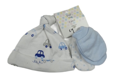 Nové - 3Set - 1x - Biela čapica s autíčky Next + 2x - rukavice - bílé s hvězdičkami, světlemodré F&F