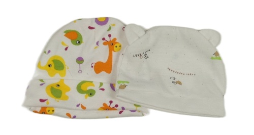2x bavlněná čepice biela so zvířátky+ biela s obrázkami