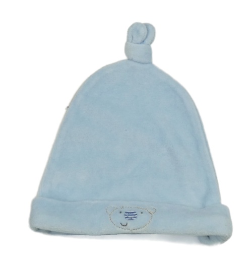 Svetlomodrá zamatová čapica s medvěďom