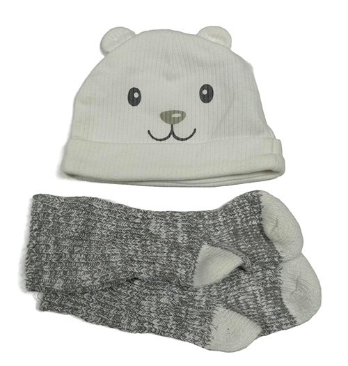 2set - Smotanová rebrovaná čapica s čumákem + sivé melírované ponožky