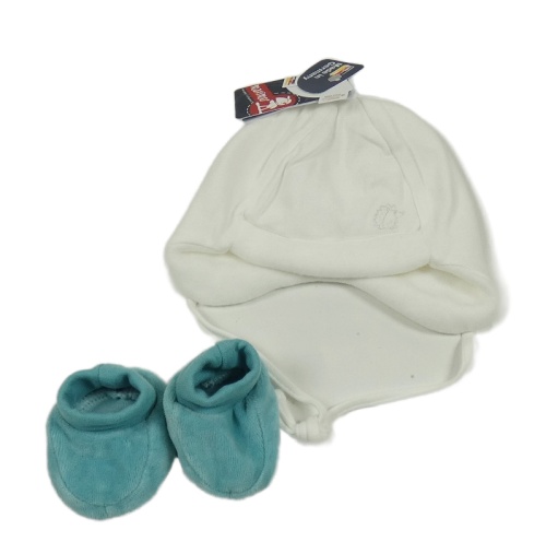 2set - Biela zamatová čepice + zelené zamatové cápačky