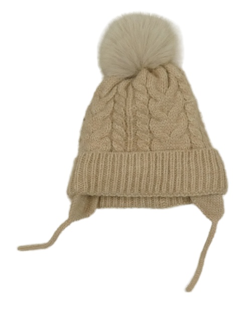 Svetlobéžová vzorovaná pletená podšitá čapica s brmbolcom