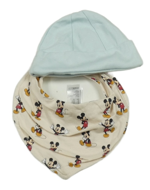 2set - Svetlomodrá čapica s mývalem + béžový slinták s Mickeym