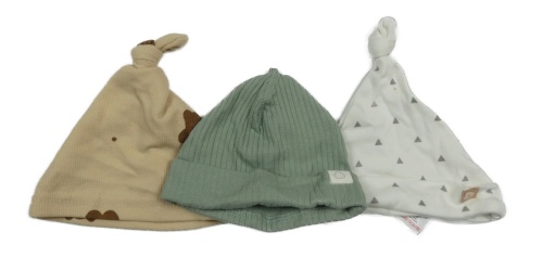 3x čepice - zelená žebrovaná + béžová + bílá vzorovaná