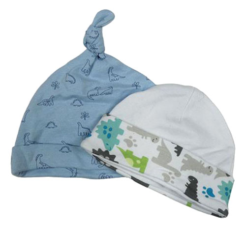 2x bavlnená čapica s dinosaury - světlemodrá + biela